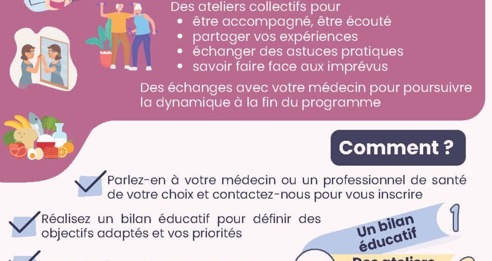 1 octobre 2025Education Thérapeutique du Patient (ETP) : deux sessions gratuites organisées ( diabète/risque cardio-vasculaires)