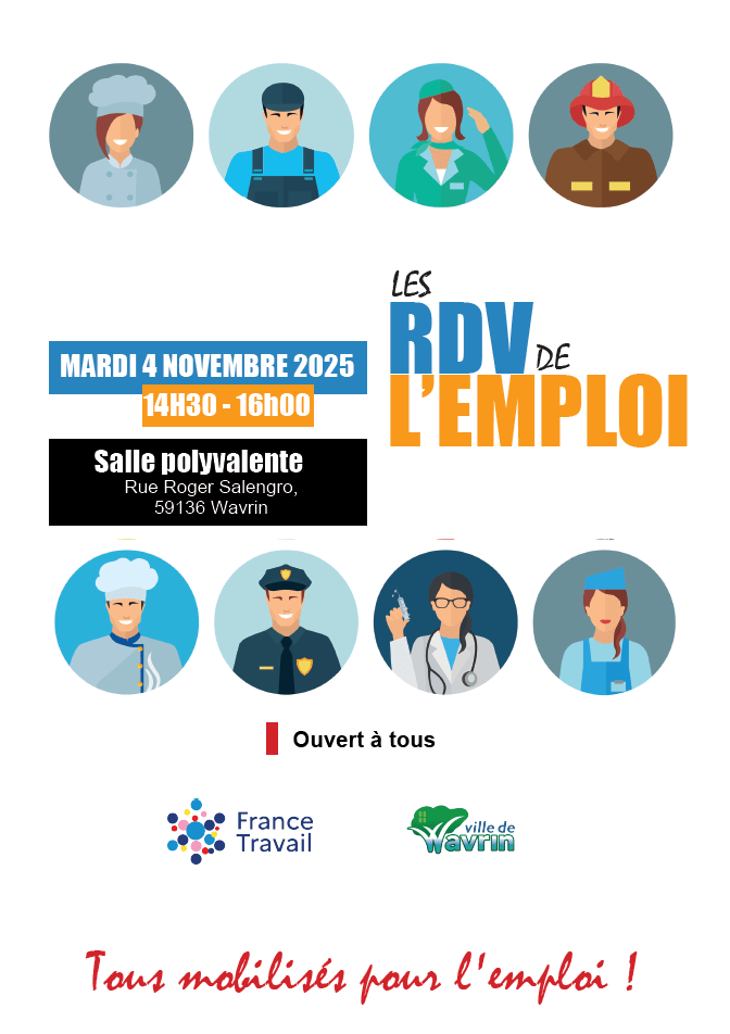 A la recherche d'un emploi? ne manquez pas les rendez-vous de l'emploi ! France Travail vient à votre rencontre à Wavrin : Le mardi 4 novembre De 14h30 à 16h00 Salle polyvalente, rue Roger Salengro, 59136 Wavrin Rencontrez des agents de France Travail pour découvrir des opportunités professionnelles dans notre région ! Entrée libre – […]