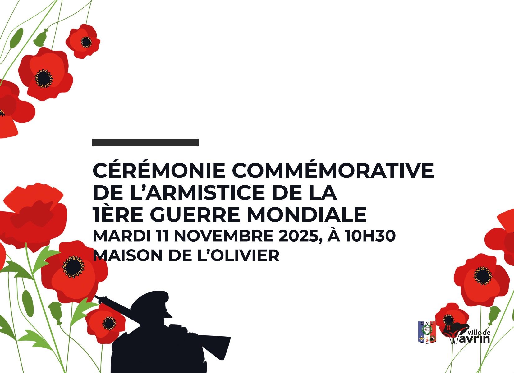 La Municipalité vous convie à la cérémonie commémorative de l'Armistice de la Première Guerre Mondiale : Mardi 11 novembre 2025 (rassemblement à 10h15) Départ du défilé à 10h30, Maison de l'Olivier 10h45 : Cérémonie au Monument aux Morts, place Pasteur 11h00 : Cérémonie au Cimetière Allemand 11h10 : Cérémonie au Carré Militaire du Cimetière Municipal