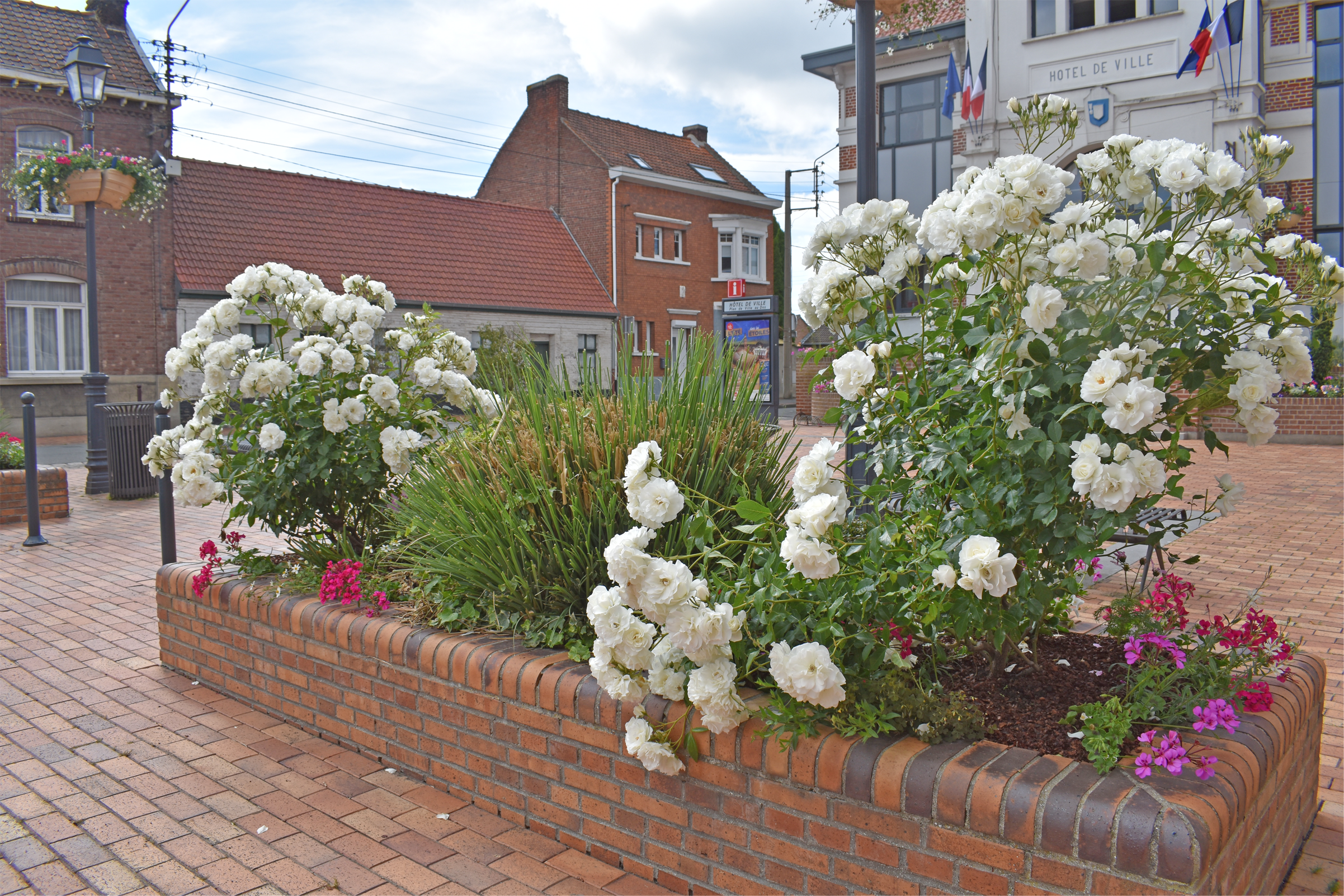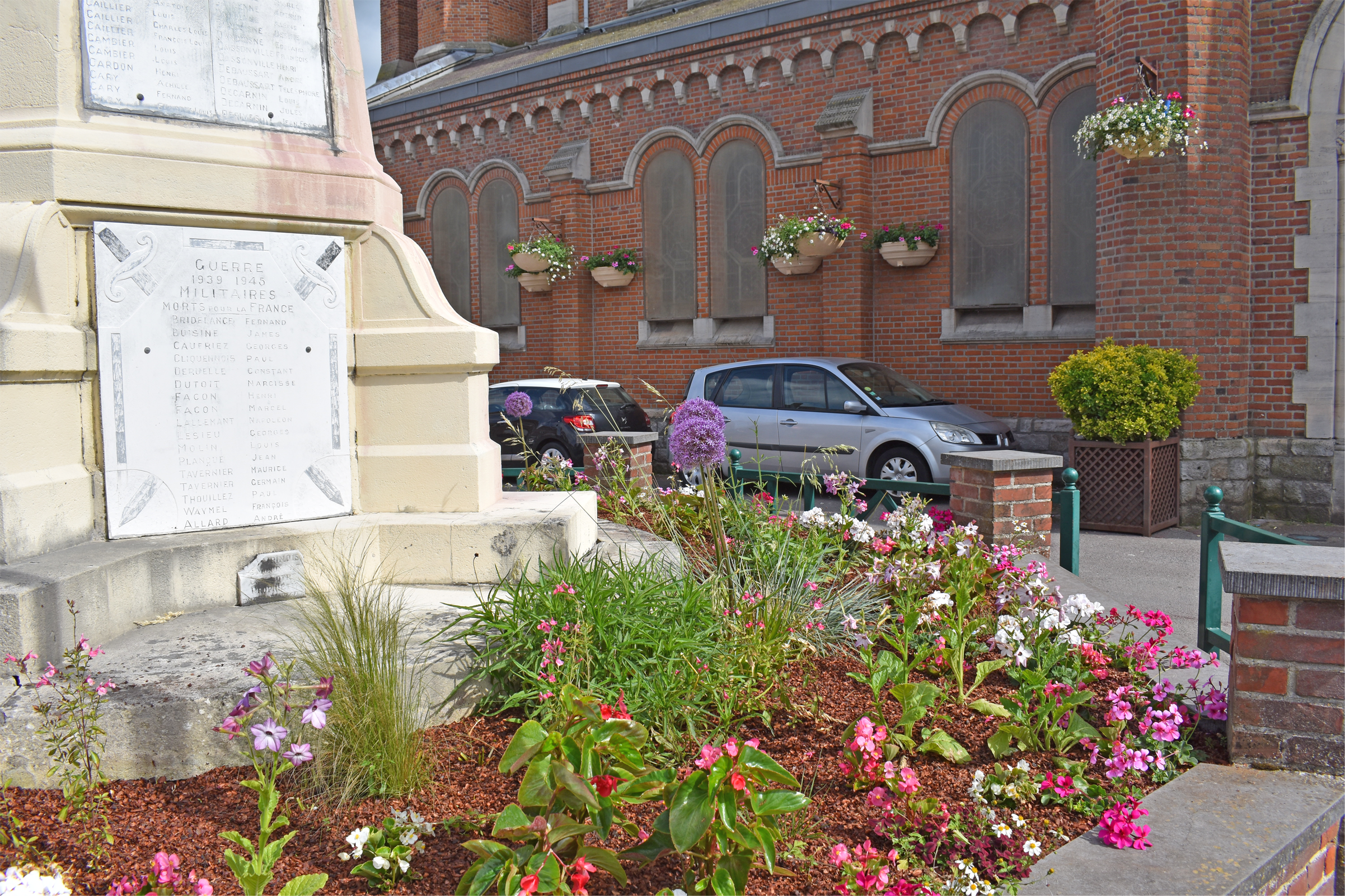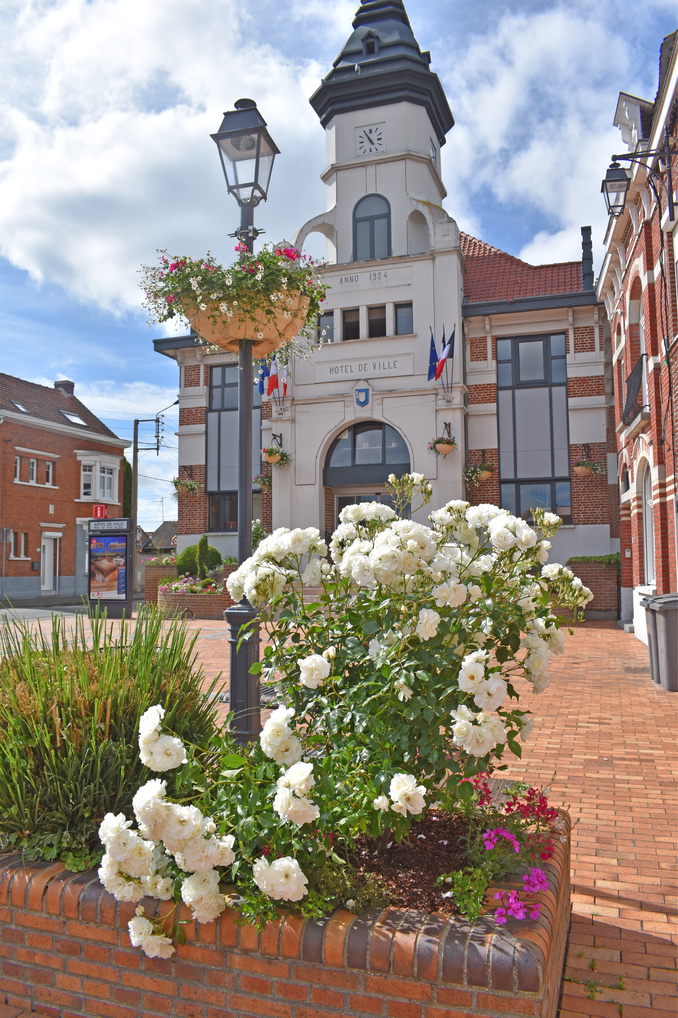 Nos agents des services techniques se sont attelés courant mai/juin au fleurissement au sol mais aussi au fleurissement aérien de la façade de la Mairie, de l’Église, du Centre Culturel le Moulin et des lampadaires qui ornent les 4 coins de la Ville.