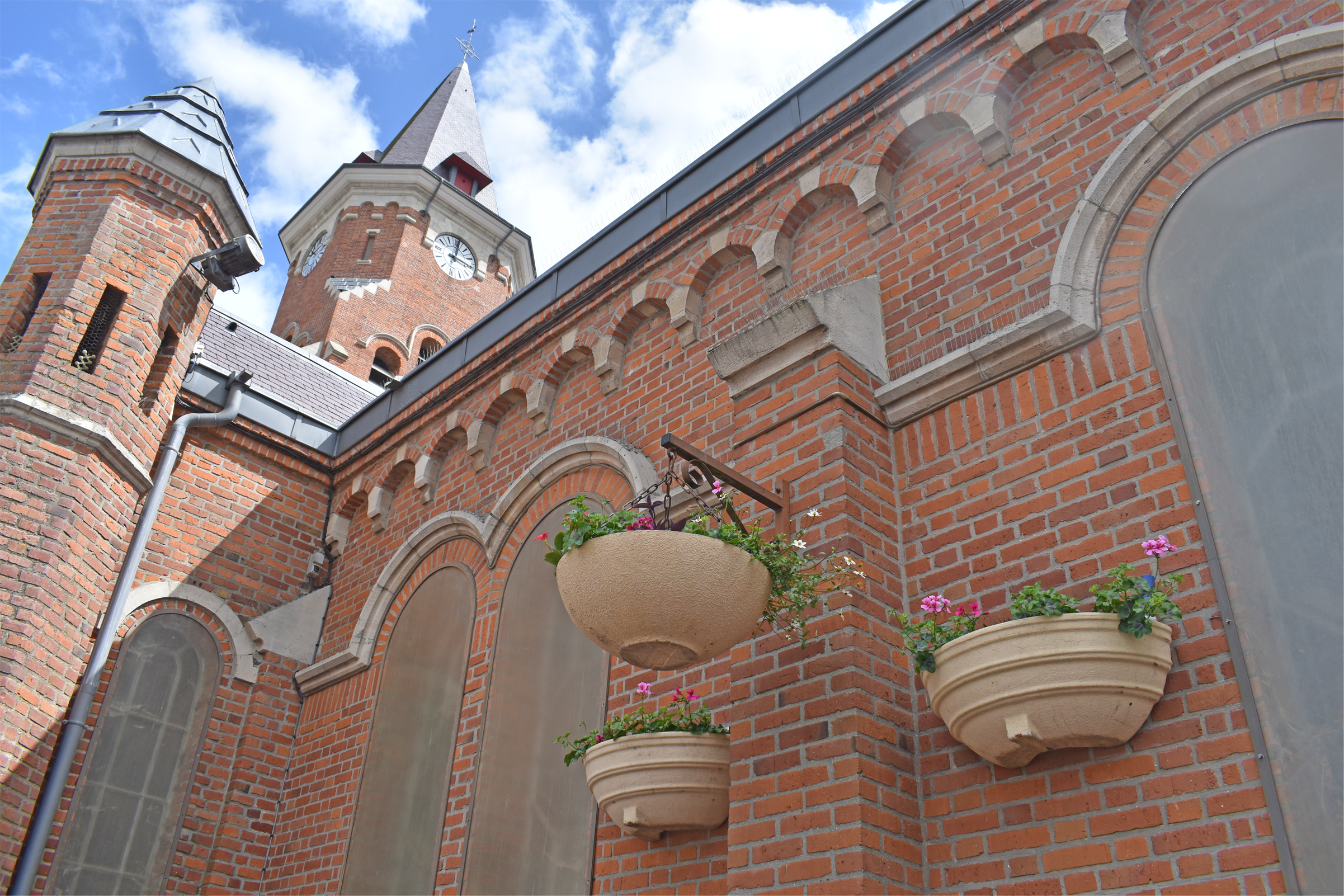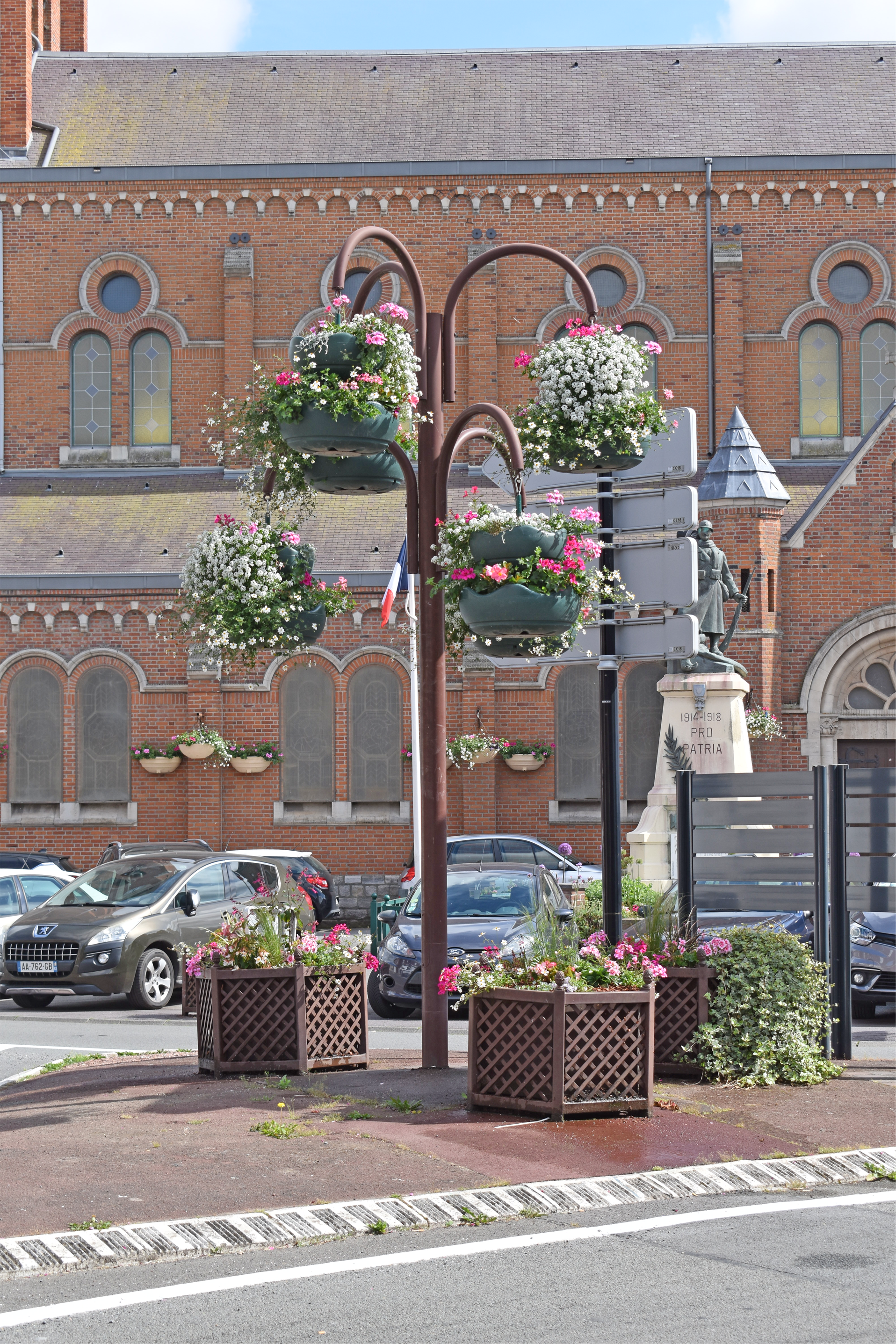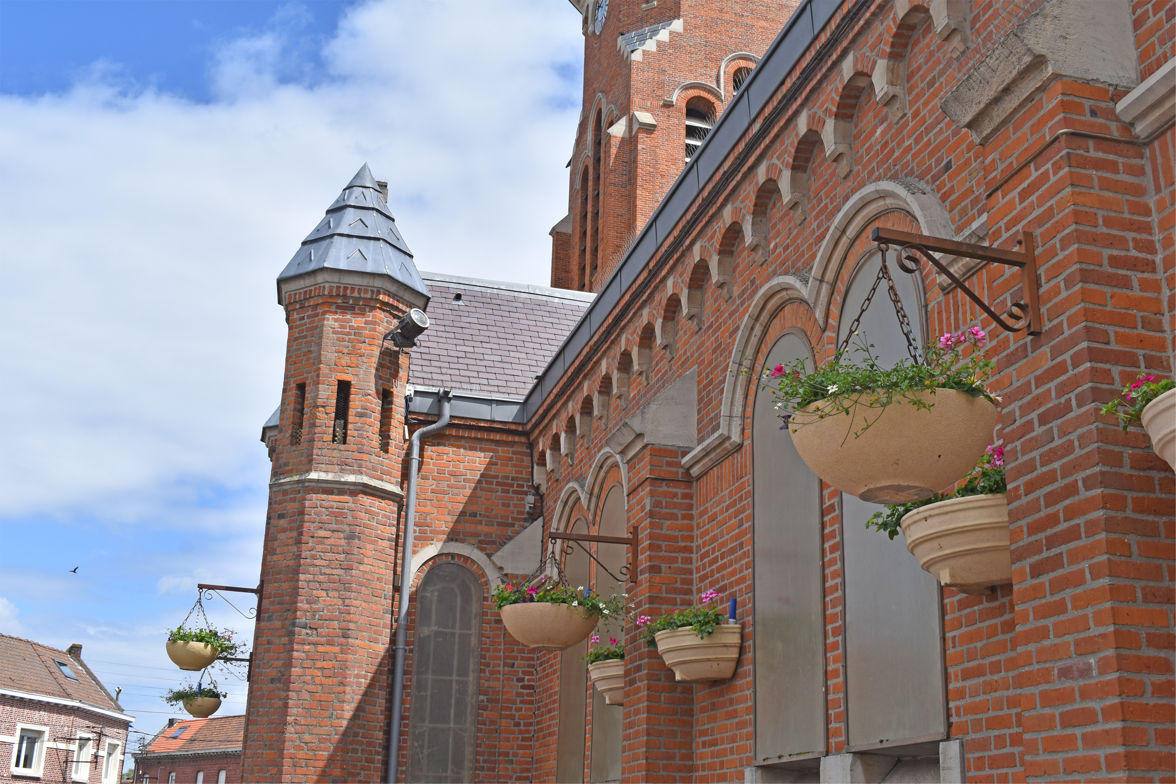 Nos agents des services techniques se sont attelés courant mai/juin au fleurissement au sol mais aussi au fleurissement aérien de la façade de la Mairie, de l’Église, du Centre Culturel le Moulin et des lampadaires qui ornent les 4 coins de la Ville.