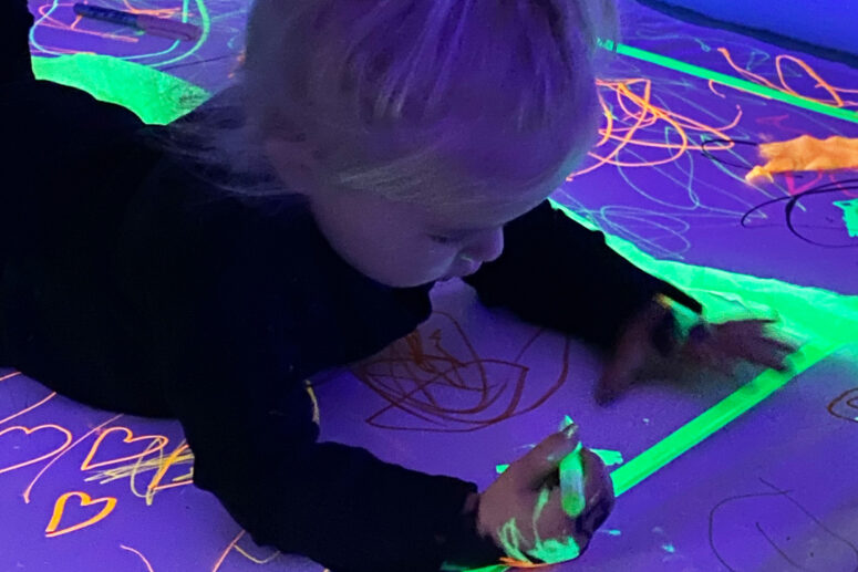 Accompagnés d’Aurélie, intervenante en arts plastiques, ils se sont plongés dans une ambiance graphique aussi surprenante que magique… Rideaux fermés, obscurité installée, et place à un moment sensoriel fluo captivant .