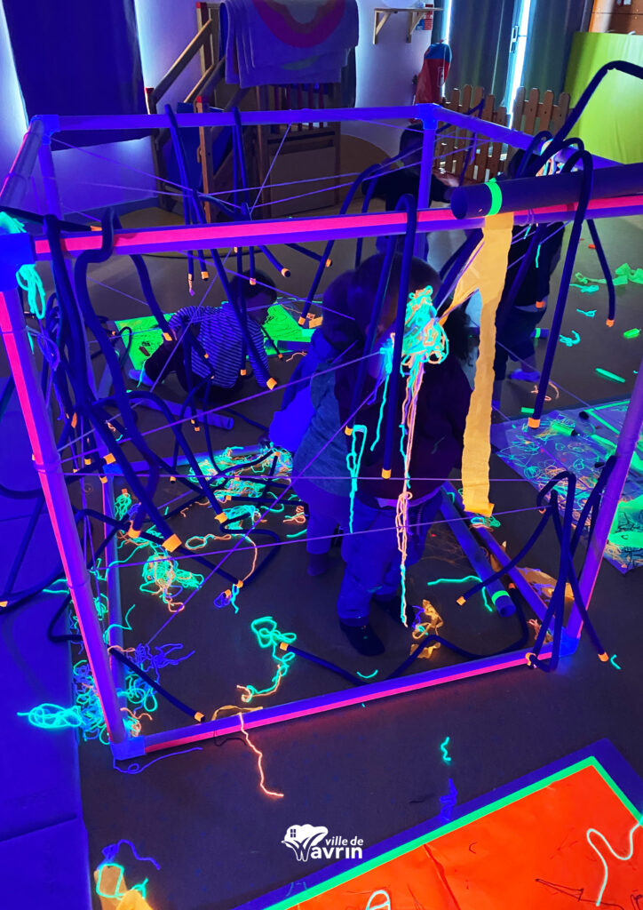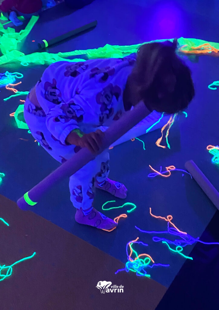 Accompagnés d’Aurélie, intervenante en arts plastiques, ils se sont plongés dans une ambiance graphique aussi surprenante que magique… Rideaux fermés, obscurité installée, et place à un moment sensoriel fluo captivant .