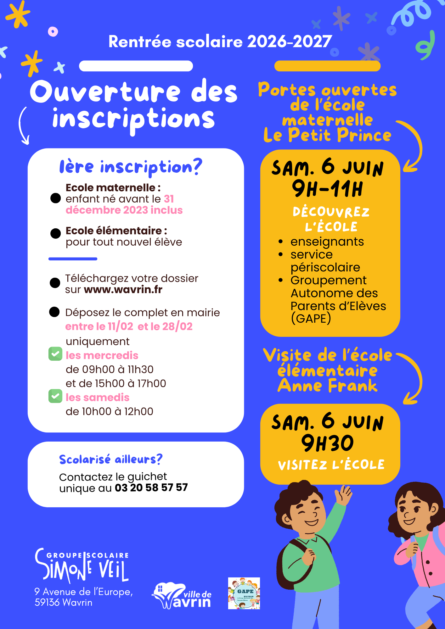 C’est le moment d’inscrire vos enfants pour la rentrée scolaire 2026 !